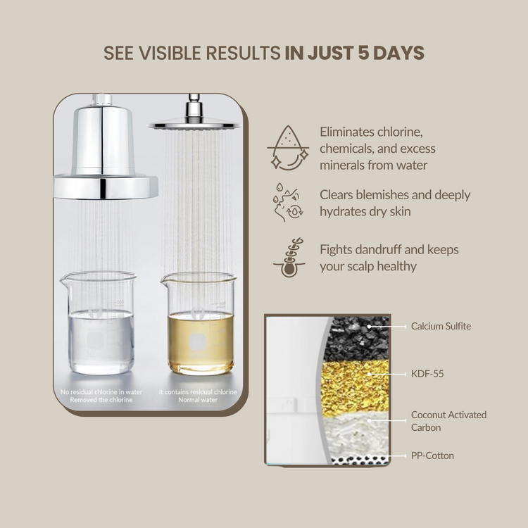 Every time you shower, your skin and hair absorb more than just water. Chlorine, heavy metals, and other harmful contaminants strip away natural moisture, leaving your skin dry and irritated while weakening your hair. Over time, this leads to dullness, breakage, and common skin issues like acne, eczema, and redness.